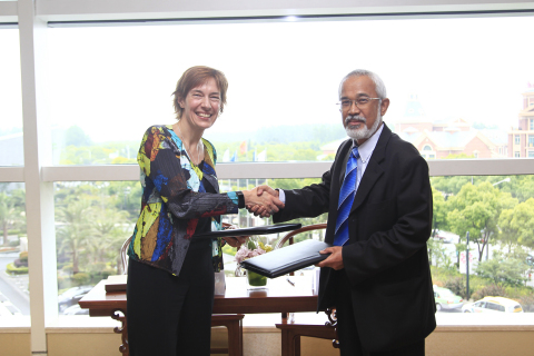 GSMA and Multimedia University of Malaysia to Establish Graduate Programme on Communications Policy and Regulation - Signing with Anne Bouverot, Director General, GSMA and Dr. Osman Mohamad, Dean, Graduate School of Management, Multimedia University of Malaysia. (Photo: Business Wire)